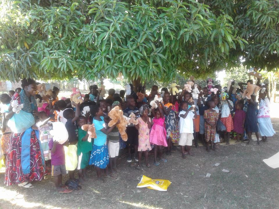 The children at our school each donated a bear to the cause. The local WI, members of the church and sewing groups managed to sew little bears which were then sponsored and sent out – each with a message of love tied around it’s neck. Sally’s Mum sewed over 200 of the bears! These bears have helped to raise over £2000 (in addition to the £5 000 we’d raised previously through bake sales and bingo nights) to provide bricks for a classroom and morning porridge (posha) for the school children on the island. It has been lovely for our village children to give something that means so much to them to a third world child. So many lessons have been learnt through this small but important act. Our children are realising how lucky they are not only to have toys but to have clean water and an education.
